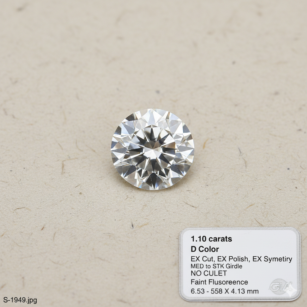Unveil the perfection of a 1.1 carat round diamond with an elite D color and SI1 clarity, expertly crafted to exacting standards with excellent cut, polish, and symmetry. The diamond’s substantial measurements—6.53–6.58 mm diameter and 4.13 mm depth—paired with a medium to slightly thick girdle and flawless finish, ensure a luminous presence in any jewelry setting. With faint fluorescence amplifying the stone’s dazzling radiance and 100% eye-clean quality, you can be confident in its visual purity and beauty. Twining wisp and feather inclusions are typical of premium SI1 diamonds, positioned so they do not compromise clarity—a testament to Belgium’s world-renowned craftsmanship. This gem is a luxurious choice for engagement rings, fine jewelry, or investment collections, delivering striking brilliance and timeless elegance.